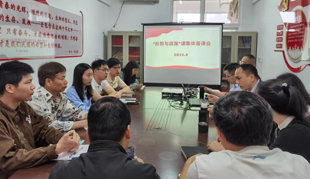 为不断推动“形势与政策”课教学提质增效,更好地推动习近平新时代中国特色社会主义思想进课堂、进学生头脑,马克思主义学院于4月21日在学院会议室举行“形势与政策”课集体备课会。学院全体党政班子成员、各教研室主任、“形势与政策”课全体任课教师参加了本次集体备课会,副院长陈赵阳教授主持了本次备课活动。
