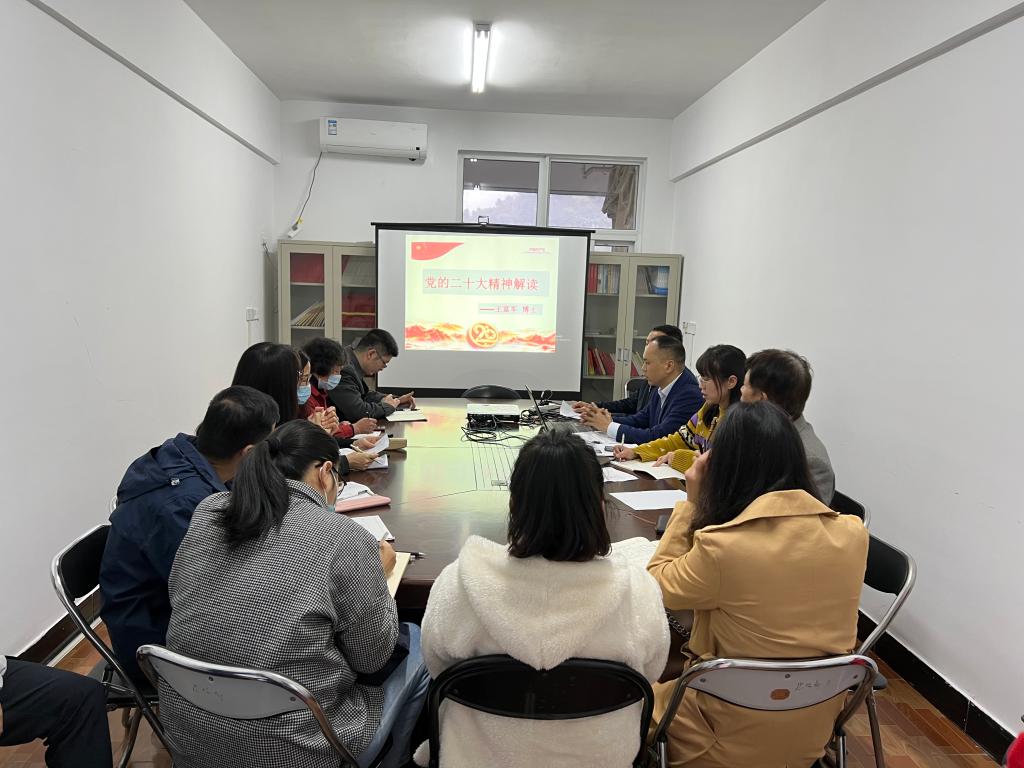会上,王富军博士从充分认识学习宣传贯彻党的二十大精神的重大意义、深刻领会党的二十大的主题、深刻领会过去5年工作和新时代10年的伟大变革的意义、深刻学习领会习近平新时代中国特色社会主义思想的世界观和方法论、深刻领会新时代新征程中国共产党的使命任务、深刻领会党和国家各项事业发展的战略部署、深刻领会坚持党的全面领导和全面从严治党的重大部署、深刻领会应对风险挑战的极端重要性,牢牢把握团结奋斗的时代要求等八个方面进行解读。同时,王富军博士结合思政课教师的工作实际,从思政课教师为什么要学党的二十大精神、怎样学党的二十大精神畅谈自己的体会。