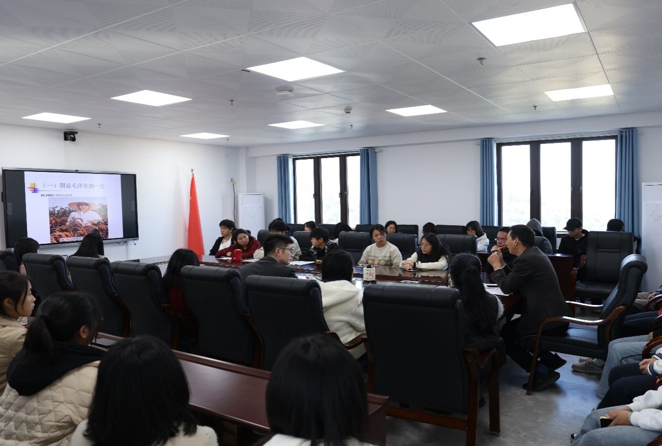 2023年12月29日下午,为学习贯彻习近平总书记在纪念毛泽东同志诞辰130周年座谈会上的重要讲话精神,马克思主义学院在林联兴科技楼十二层第一会议室举办题为“跟毛泽东学做思想政治工作”的讲座。讲座由马克思主义学院院长林书红教授主讲,全体马克思主义学院教师和部分思想政治教育专业学生听取了讲座。
