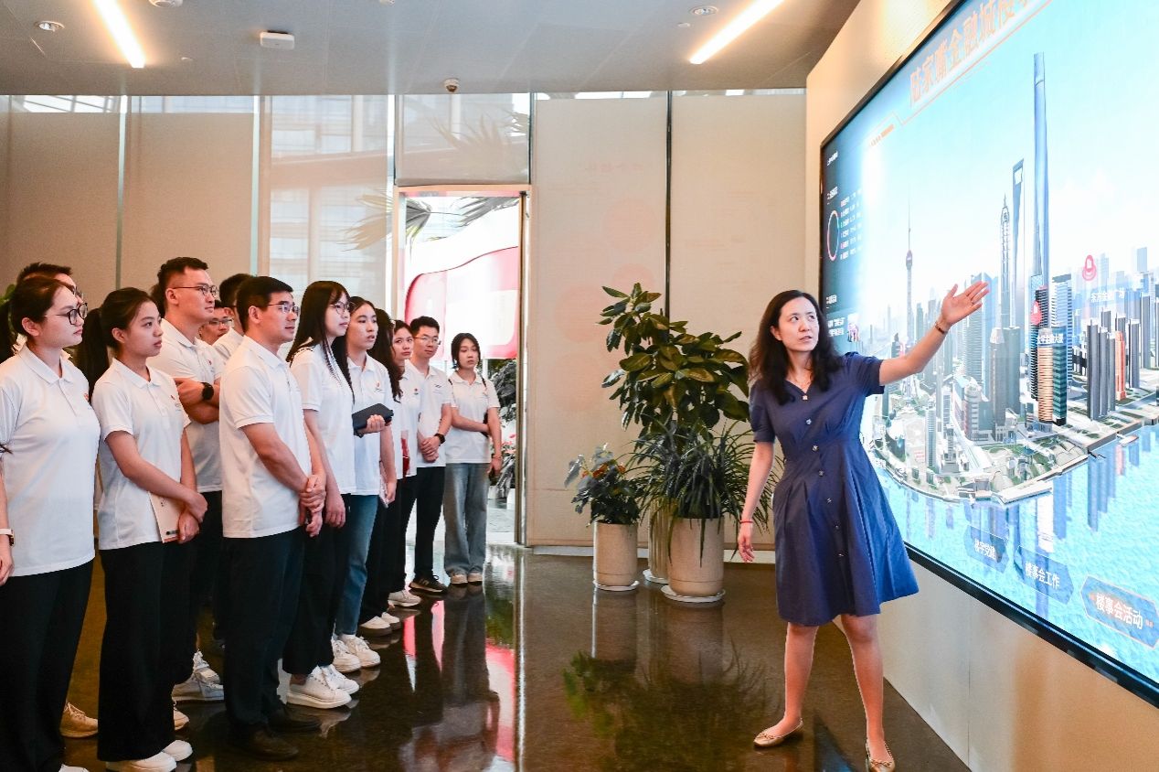 中国第一高楼上海中心大厦22层的陆家嘴金融城党群服务中心,作为探索新时代城市党建与基层治理创新的重要实践场域,实践队在此与陆家嘴金融贸易区综合党委片区负责人、上海中心大厦楼宇党委专职副书记展开深度访谈,系统了解该中心以“楼事会”机制激活楼宇党建活力的创新路径,以及在金融城这一特殊场域中推动党建与经济发展、社会治理深度融合的实践经验。