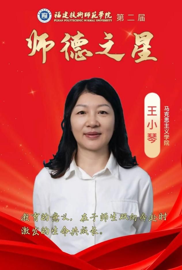 王小琴老师自入职以来,始终坚守在思政教学工作一线,承担《思想道德与法治》《中国近现代史纲要》《伦理学》等核心课程教学任务。她坚持“教材为准、形式创新”的教学理念,将抽象理论与鲜活案例结合,其授课方式得到授课班级学生的高度认可。2023年获校“教学名师”荣誉称号,2022年获福建省职业院校技能大赛教学能力比赛高职公共基础课程组三等奖,2021年获校教学创新大赛二等奖。