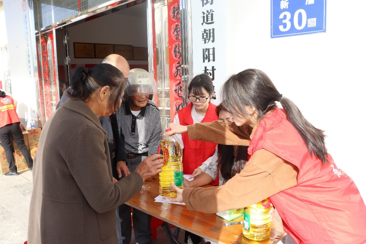 活动当天,志愿者们早早抵达朝阳村,手持扫帚、抹布等工具,清理地面杂物、擦拭公共设施,为老人们营造干净整洁的生活环境。物资发放环节,志愿者们协助工作人员搬送慰问物资,维持现场秩序,引导老人签字核对信息,并将慰问金与食用油逐一送到老人手中。针对部分高龄或行动不便的老人,志愿者们配合朝阳村委会工作人员,一同上门开展慰问,将节日祝福与暖心物资送到老人家门口,确保关怀 “不漏一户、不落一人”。