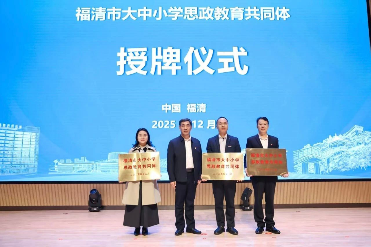 会上还举行了授牌仪式,我校马克思主义学院、福建农业职业技术学院马克思主义学院、福清市教师进修学校获颁“福清市大中小学思政教育共同体”单位,福清第一中学等10所学校获颁“福清市大中小学思政教育共同体基地校”单位。