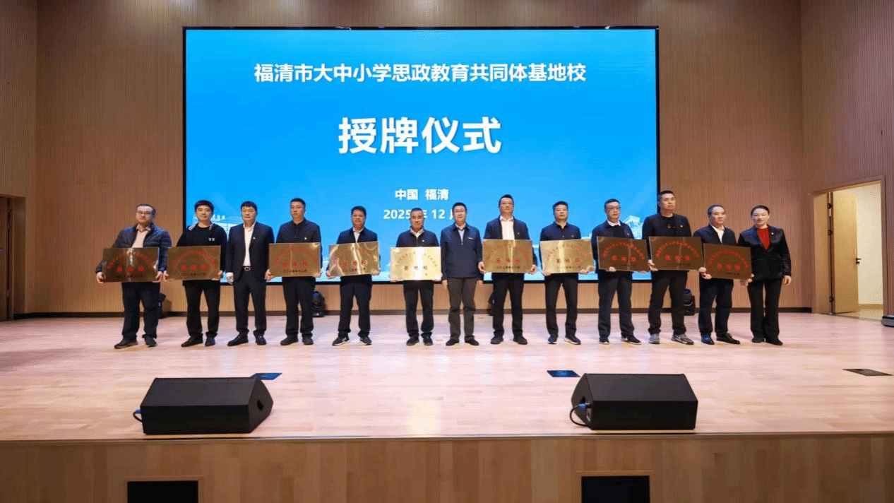 会上还举行了授牌仪式,福建技术师范学院马克思主义学院、福建农业职业技术学院马克思主义学院、福清市教师进修学校获颁"福清市大中小学思政教育共同体"单位,福清第一中学等10所学校获颁"福清市大中小学思政教育共同体基地校"单位。