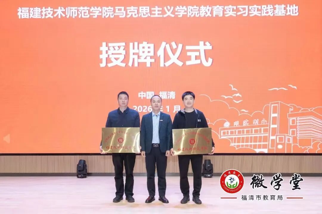 随后,陈赵阳院长向福师院附小、福师院附中颁发马克思主义学院教育实习实践基地牌匾。福师院附小李云恩校长向福建技术师范学院马克思主义学院“五心讲坛”志愿宣讲队颁发牌匾。