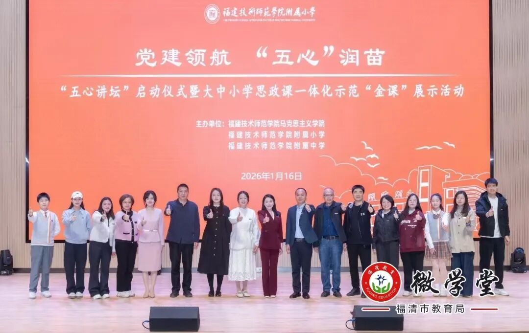 2026年1月16日上午,福建技术师范学院附属小学“五心讲坛”启动仪式暨大中小学思政课一体化示范“金课”展示活动在福建技术师范学院宝琛图书馆报告厅顺利举行。