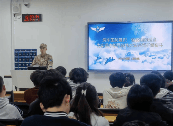 讲座中,教官结合近期国际热点事件与我国国家安全面临的多元挑战,深入浅出地阐释了国防建设的时代意义。他指出,当前全球格局风云变幻,地区冲突、安全威胁从未远离,面对复杂的国际局势和多变的全球格局,青年一代更应肩负起历史使命,以实际行动践行爱国之志、强国之梦。针对大学生群体,教官提出三点期望:一是听党话,跟党走,坚定理想信念,增强政治认同;二是爱国家,担使命,提升责任意识,勇担时代重任;三是学本领,作贡献,不断提升自身能力,积极投身国防事业。整场讲座案例鲜活、逻辑清晰,既有对国际局势的宏观解读,也有对青年责任的具体指引,让学生们对国防教育有了更全面、深刻的理解。