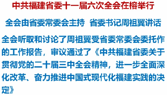 中国共产党福建省第十一届委员会第六次全体会议决议(2024年8月23日中国共产党福建省第十一届委员会第六次全体会议通过)