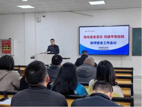 党总支副书记(主持工作)陈飞首先以“强化安全意识,共筑平安校园”为主题,结合学院实际,重点围绕意识形态安全、网络安全,电信诈骗、交通安全,防灾避险等5个方面内容,通过真实案例和数据分析,深入剖析了在日常教学、科研和生活工作中可能存在的安全隐患,并对新一年学院教师安全工作进行了部署,进一步增强了全体教师的安全意识,压实了安全责任,筑牢了校园安全防线。随后,以“弘扬教育家精神,严守师德师风底线”为主题,强调对师德违规问题“零容忍”,对师德失范“一票否决”制度,并希望全体教师要坚守职业道德底线,弘扬教育家精神,坚持立德树人初心,始终牢记为党育人、为国育才使命,为推进学校和学院各项事业高质量发展作出更大贡献。