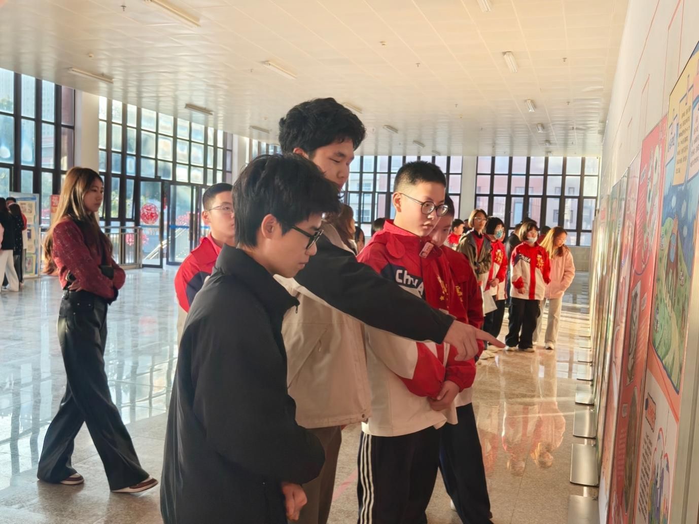 此次活动不仅是院校深化合作的重要里程碑,也为思想政治教育专业的学生提供了宝贵的实践平台。活动期间,正在附中进行教育实践的思想政治教育专业部分学生代表,结合专业知识,为附中学生生动讲解了由市博物馆引进校园的“马上有福见”主题展览,实现了高校理论资源与中学德育实践的良性互动,展现了我院学子的专业素养。