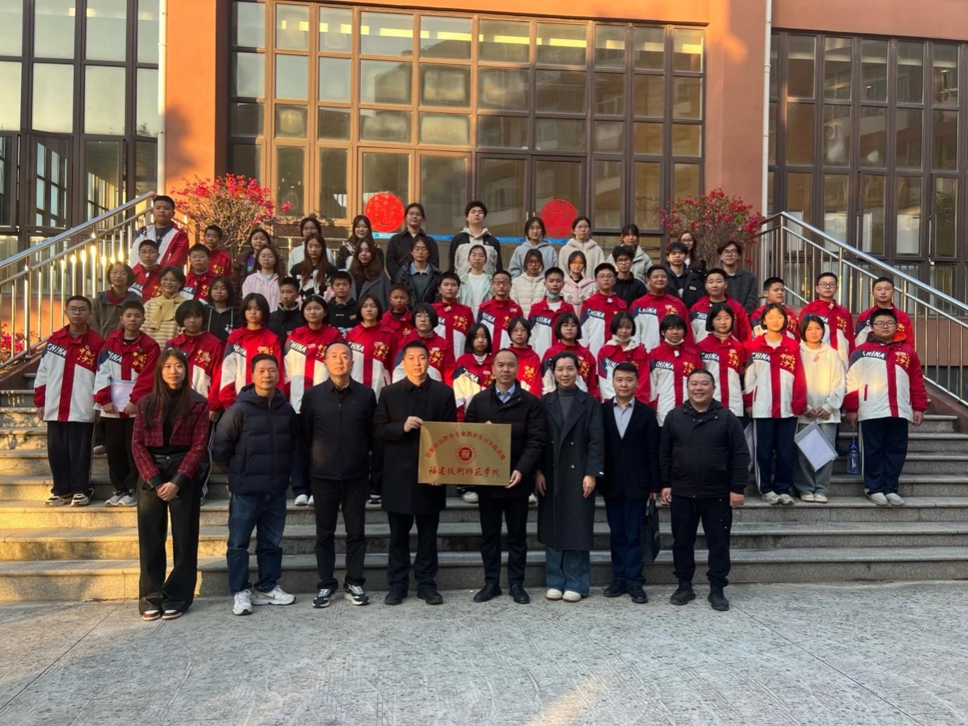 座谈会上,双方围绕如何构建大中小学段思政课有效衔接机制、优化师范生实践教学体系等议题进行了深入交流。随后,陈赵阳副院长与陈兢校长分别代表双方签订了《共建实习实训基地,推进大中小学思政课一体化建设协议书》。根据协议,双方将在师范生技能培养、教学研究、优势互补等方面开展深度合作。签约仪式后,陈赵阳副院长向附中颁授了“思想政治教育专业教育实习实践基地”牌匾。